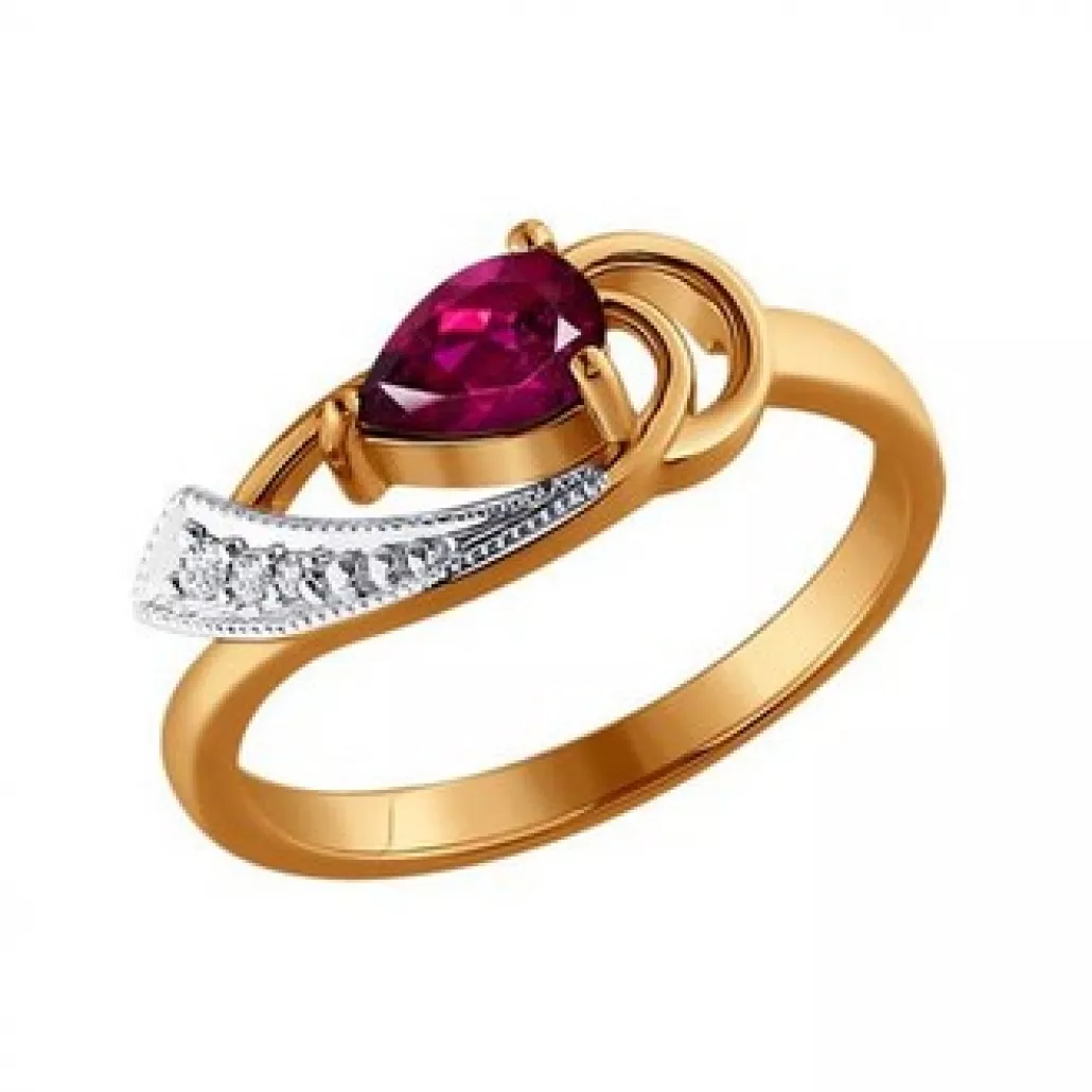 Кольцо с бриллиантами с рубином из золота