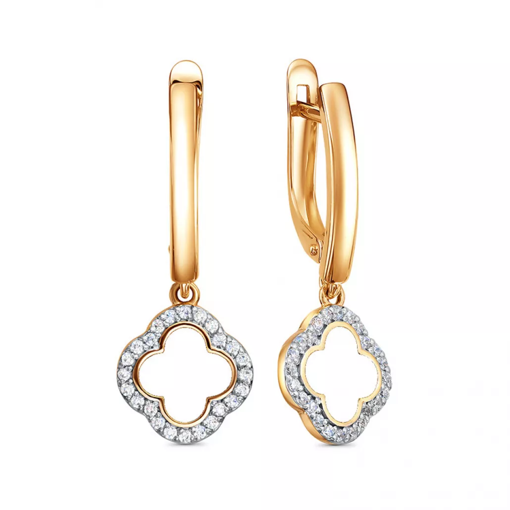 Серьги с фианитом и эмалью из золота