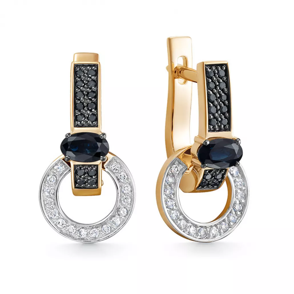 Серьги с бриллиантами с сапфиром из золота