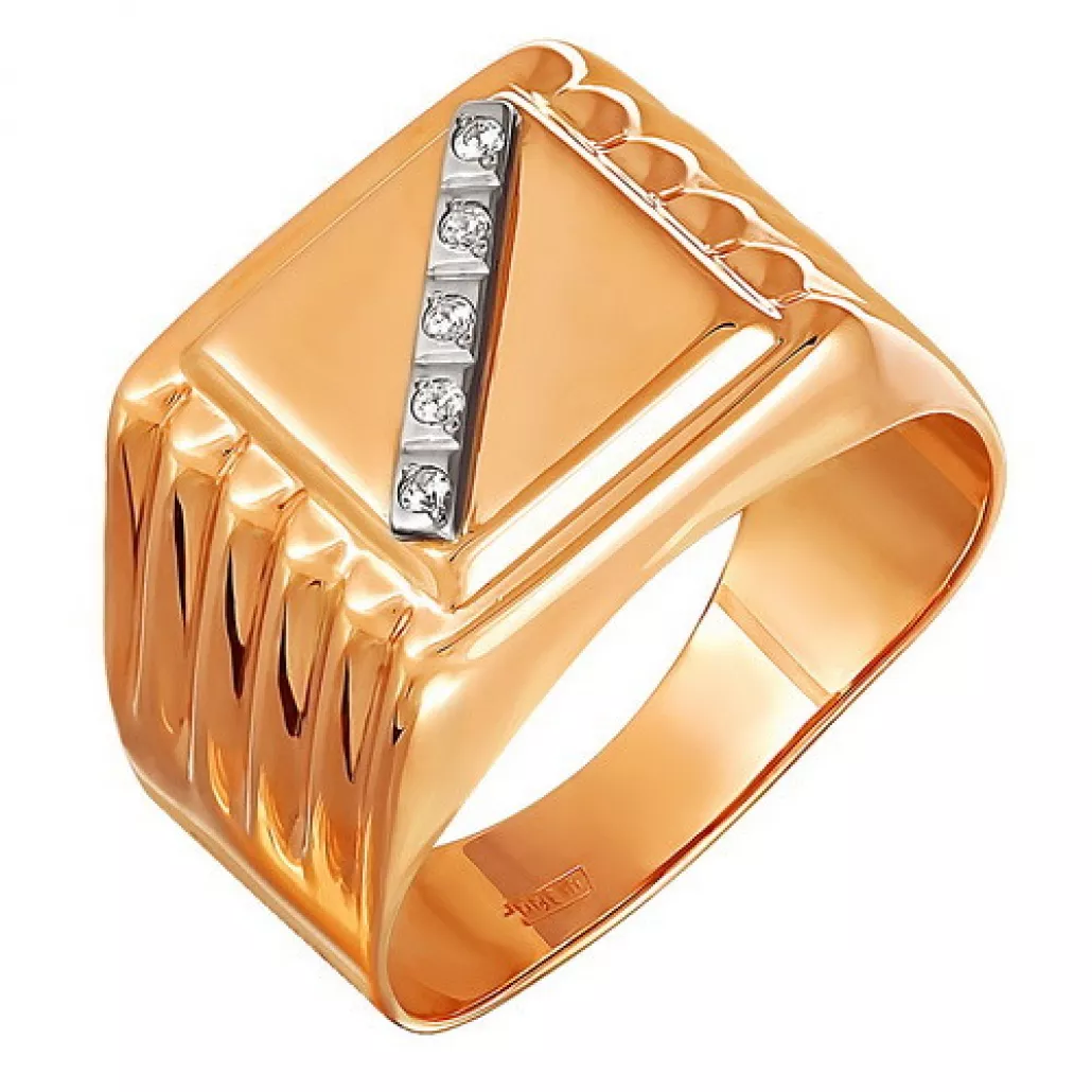 Кольцо-печатка с фианитом из золота