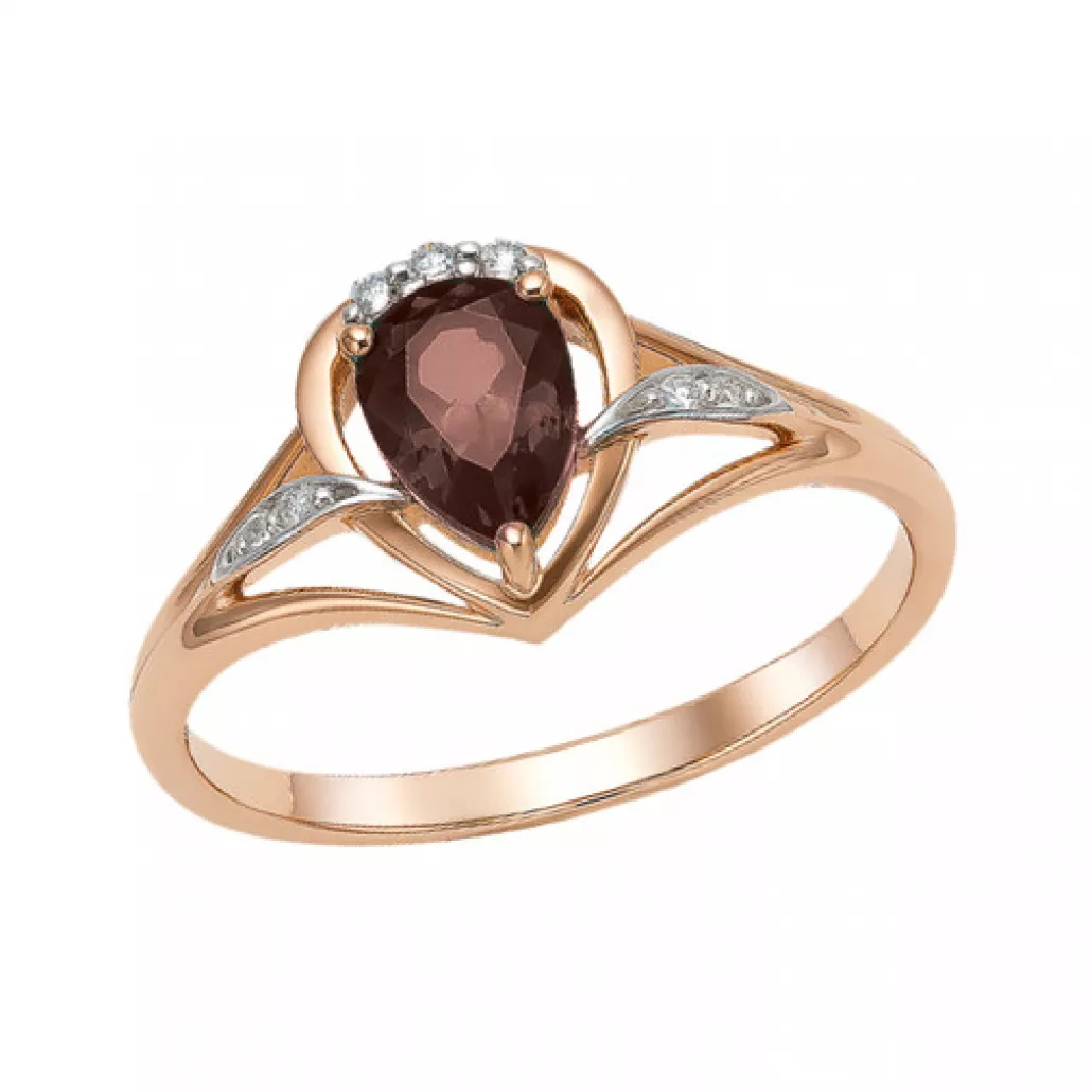Кольцо с гранатом и фианитом из золота