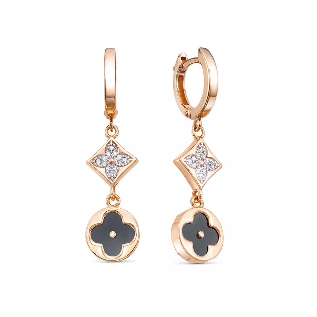Серьги с фианитом и ониксом из золота
