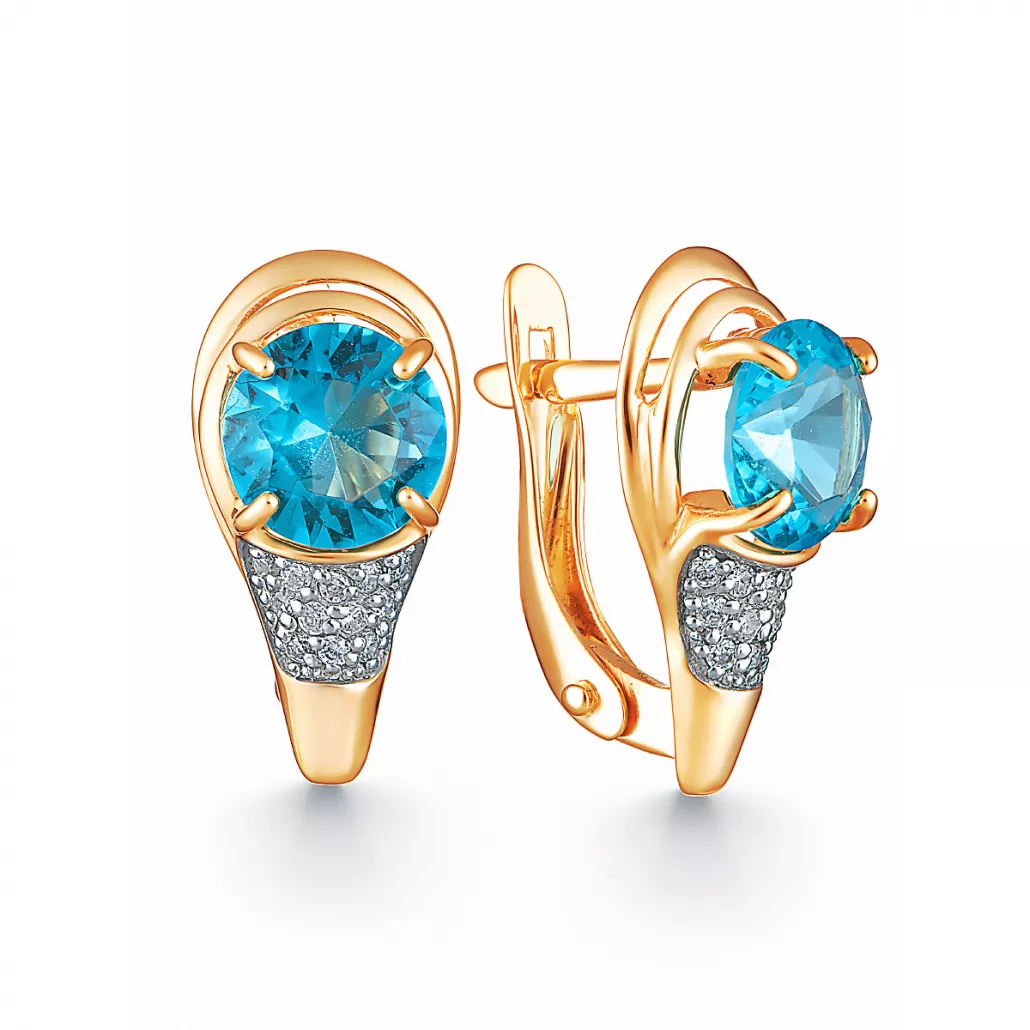Серьги с топазом и фианитом из золота Артикул: 2003404ТС